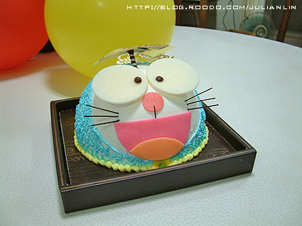 ↑為了買個蛋糕,我弟和老婆冒著大風雨跑遍各蛋糕店(因為颱風天很多店都打烊了),最後終於搶到這個超卡哇依的小叮噹蛋糕,頭上還有竹蜻蜓喔!會不會太可愛了點啊?